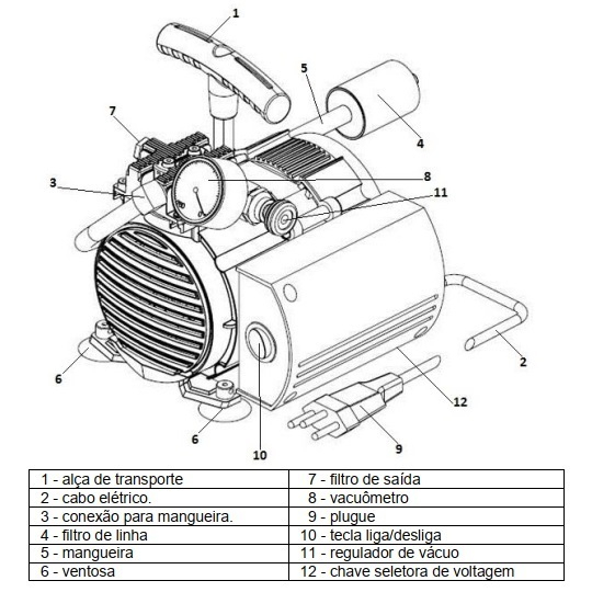vacuômetro: filtro de particulado; regulador de pressão; mangueira de silicone